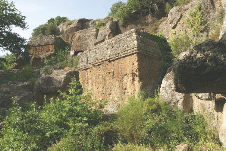 - First it was a long walk from the end of the road so I could see that few people ever visit this site. I arrived at the site late. It starts at the cliff as the farmland opens up into a river valley - Artists reconstruction of the Norchia site. It's like the valley of the dead in Egypt
