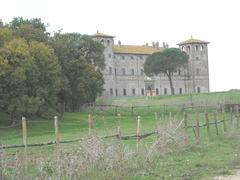I walked around the outside and had just left the site so I was able to hitch a ride to the highway with the building workers who were going to Vetralla