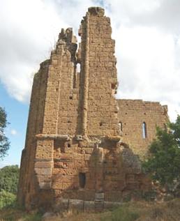 I crossed an ancient Roman bridge and over barbed wire designed to stop people coming into the Military Zone. I walked up the path past more Etruscan ruins and up to the Abbey. It had a courtyard. No one was there except some building workers.