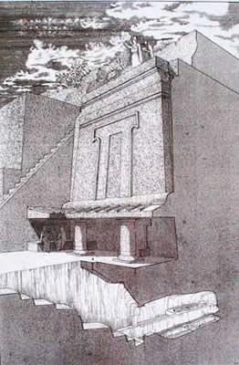 - First it was a long walk from the end of the road so I could see that few people ever visit this site. I arrived at the site late. It starts at the cliff as the farmland opens up into a river valley - Artists reconstruction of the Norchia site. It's like the valley of the dead in Egypt